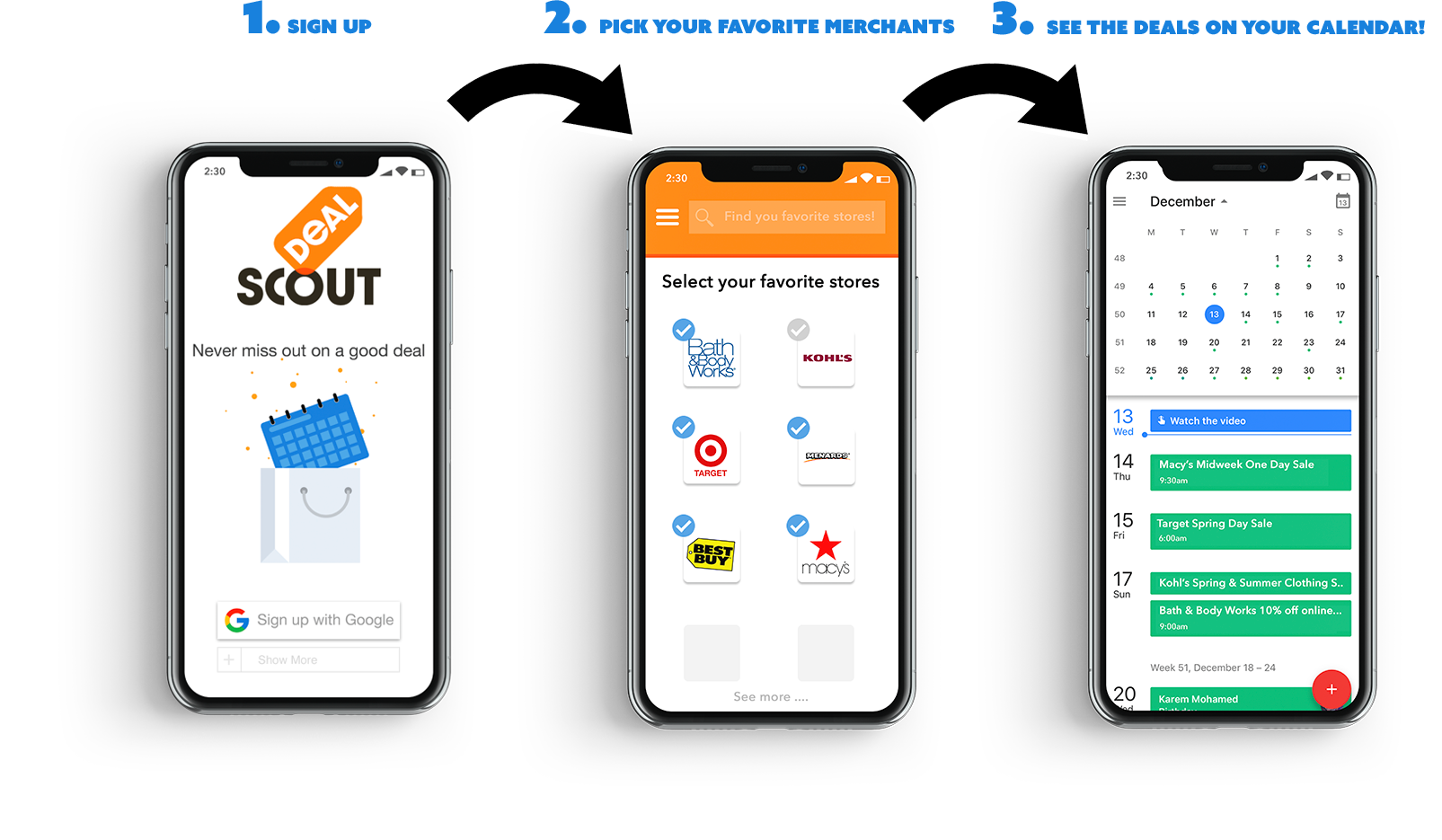“Deal Scout will find the most relevant limited time sales or deals from retailers. We gather this information and with your permission, we will add this to your online calendar.”